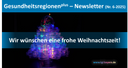Ein ereignisreiches Jahr mit Herausforderungen, aber auch Chancen neigt sich dem Ende zu. Gerne möchten wir wieder die Gelegenheit ergreifen, um uns herzlich für die vertrauensvolle und erfolgreiche Zusammenarbeit zu bedanken. Ihre engagierte Arbeit vor Ort und das partnerschaftliche Miteinander haben auch in diesem Jahr wieder zum gemeinsamen Erfolg der Gesundheitsregionenplus beigetragen.